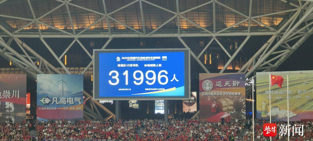 扬子晚报网讯(记者 朱亚运 张添翼)8月31日晚,“苏超”第十轮南通队对阵苏州队比赛在南通体育会展中心打响,经过90分钟激烈角逐,两队共同为31996名观众献上一场精彩对决。最终,“领头羊”南通队2:1战胜苏州队,豪取九连胜,以27分继续占据积分榜榜首,并有望在下一轮提前锁定常规赛第一。