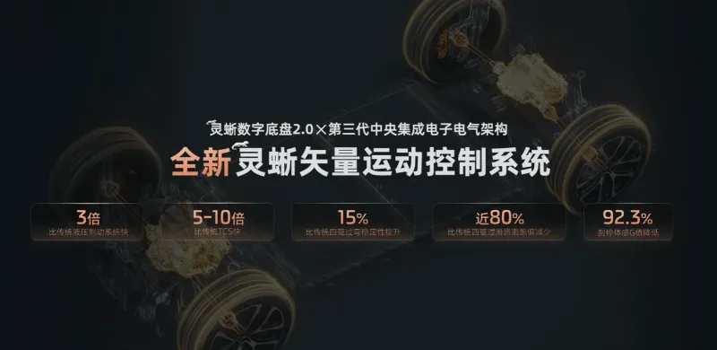 新车搭载新一代灵蜥数字底盘,融合第三代中央集成电子电气架构,并整合德国大陆MKC2线控制动系统、智慧四轮转向等顶级硬件,双向18°智慧四轮转向系统,实现转弯半径低至4.79米。此外,还配备空气悬架,具备70mm超长调节行程。