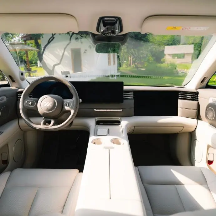 内饰采用分屏布局,配备27.1英寸5K MiniLED屏和15.6 英寸3K MiniLED副驾娱乐屏,提供全幅方向盘和YAT半幅方向盘可选,搭载全新AIOS1.0交互系统。同时,还配备11升智能冷暖冰箱、副驾零重力座椅、AR-HUD抬头显示、主动降噪、全景天幕、悬浮式音响系统等豪华配置。