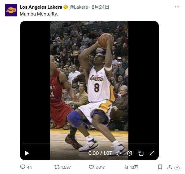 7、湖人官方:“8/24——曼巴日”